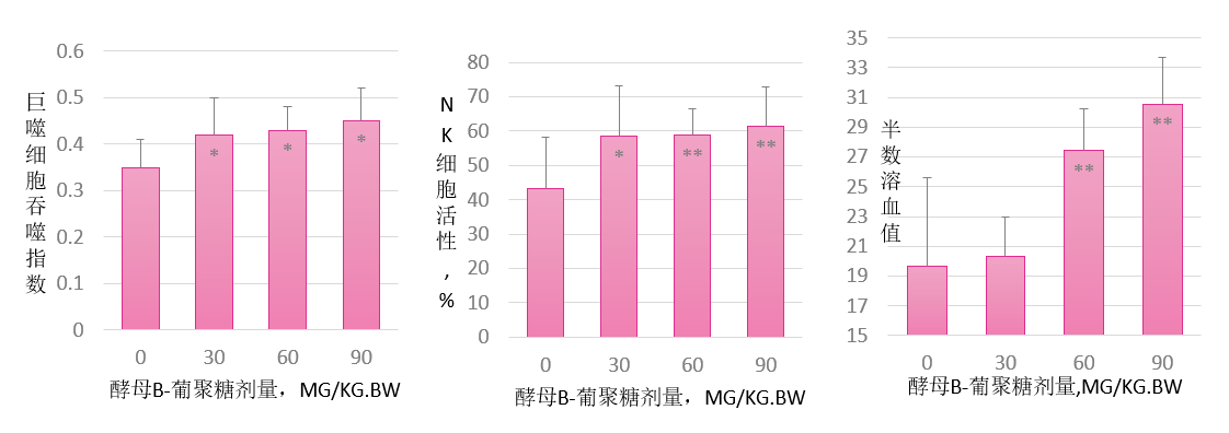 酵母β-葡聚糖能促進小鼠的細胞免疫功能、體液免疫功能和巨噬細胞功能: