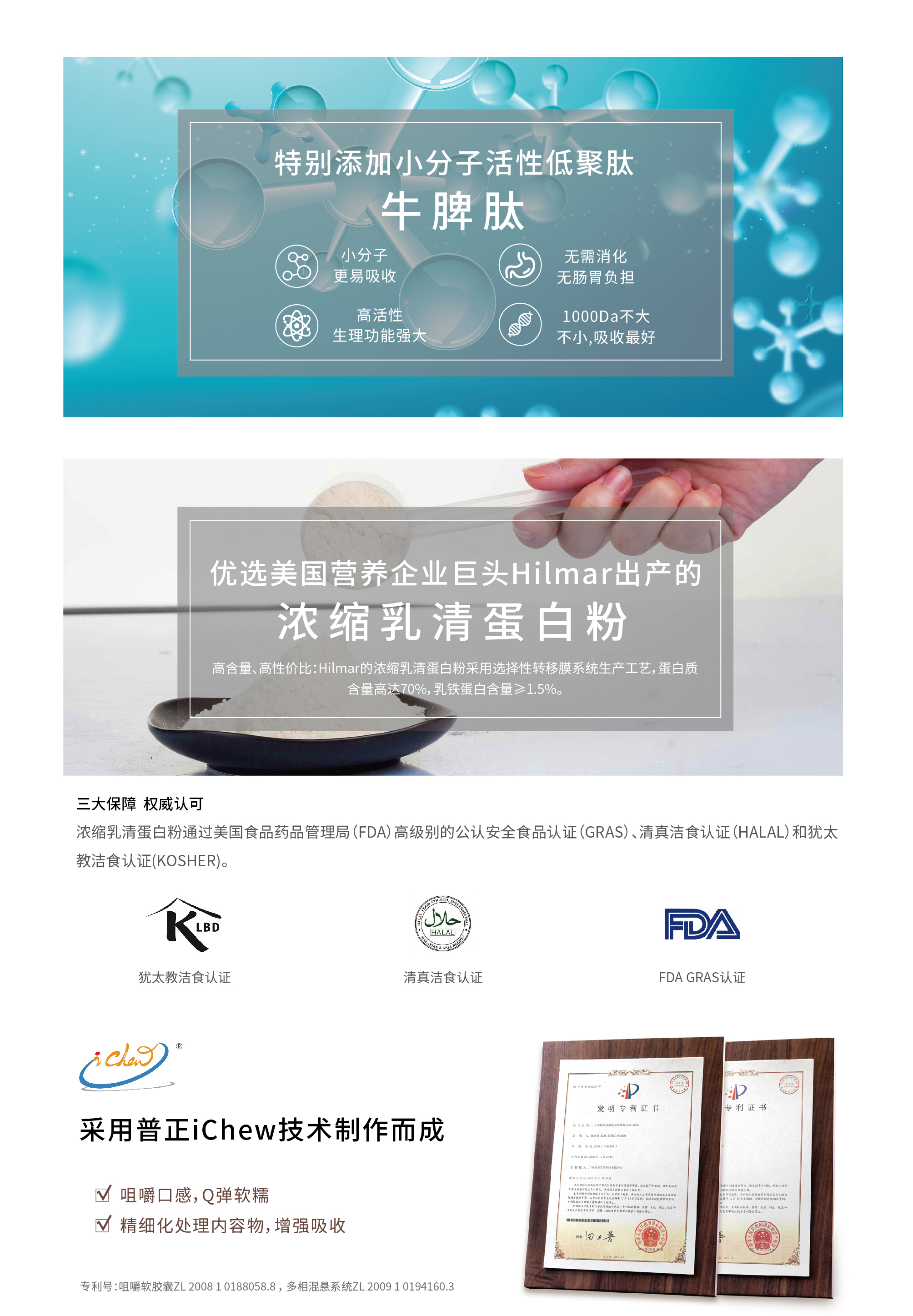 選用美國(guó)進(jìn)口生物活性濃縮乳清蛋白粉為原料,乳鐵蛋白和免疫球因子,具有抗病毒、增強(qiáng)免疫力作用。