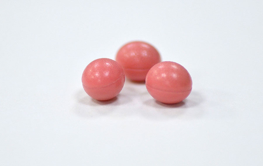 大小形狀:球形、650mg/粒