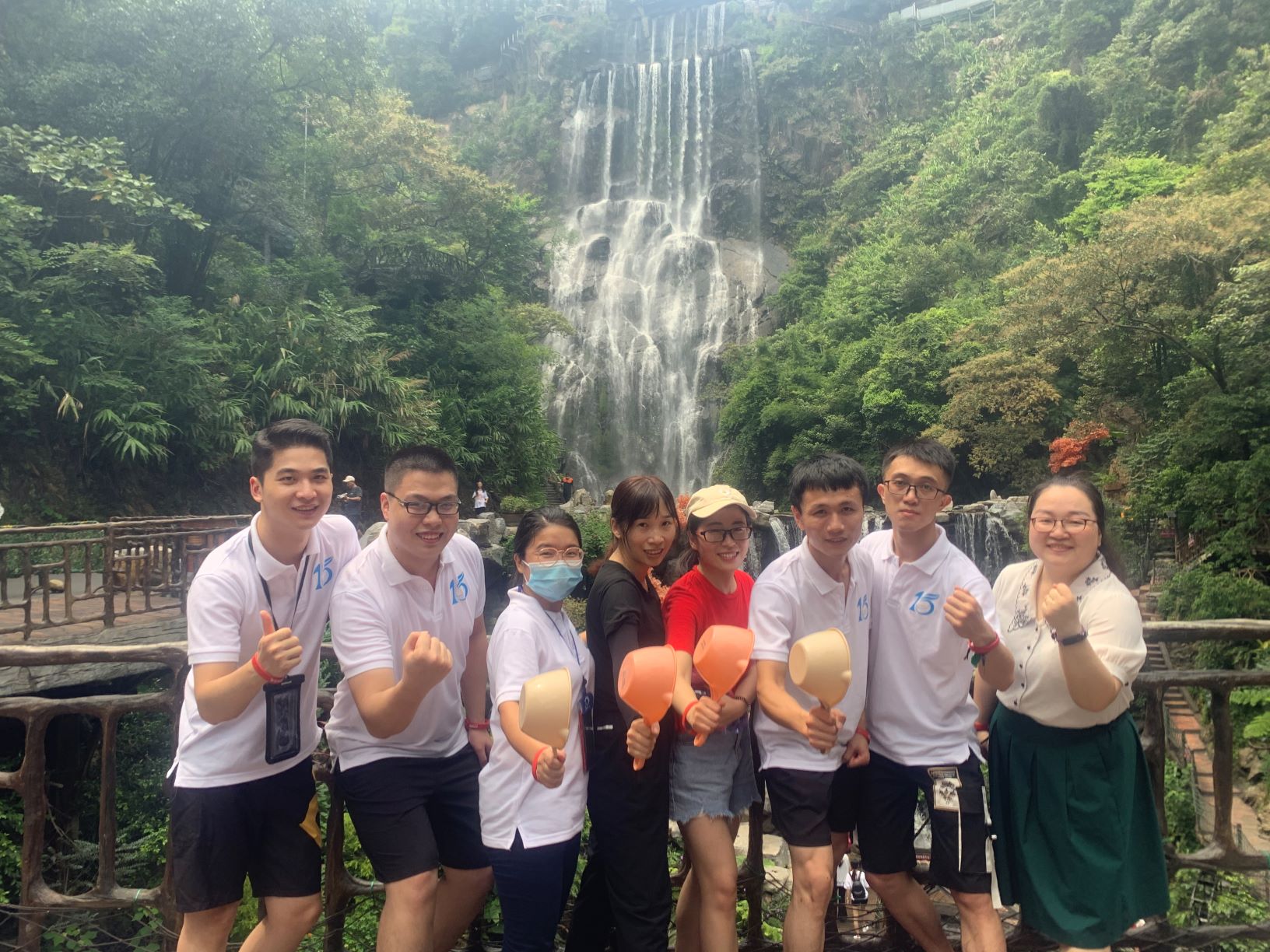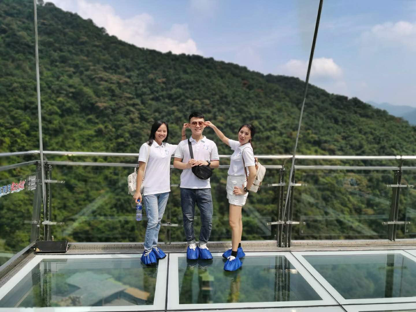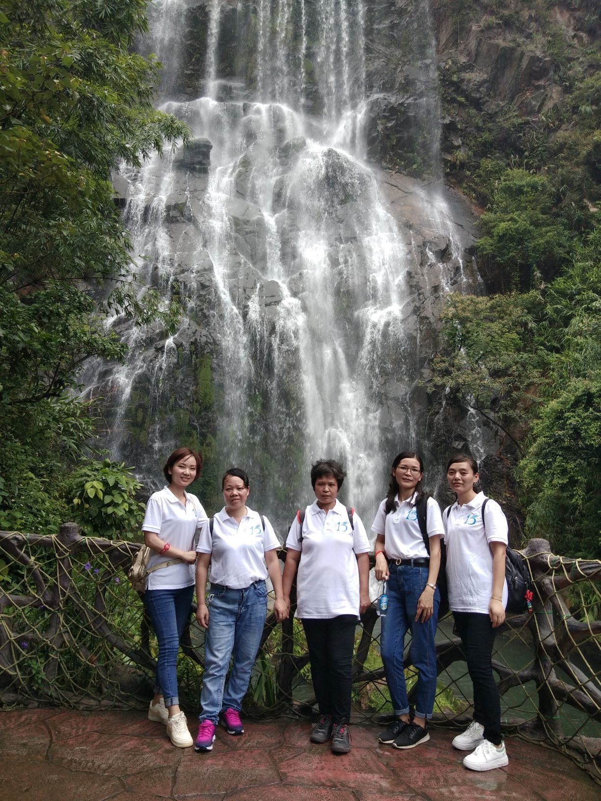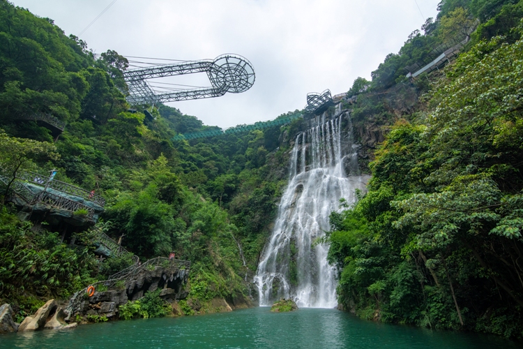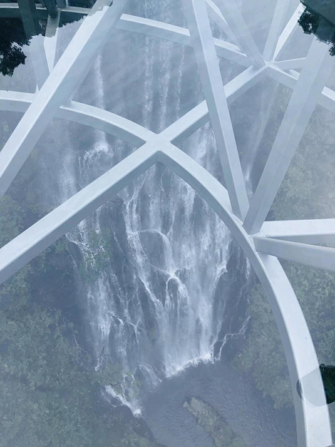 第一站是玻璃大峽谷。小伙伴們一路浩浩蕩蕩,沿著林間小路拾級而上,這里樹木郁郁蔥蔥,層層疊疊的深綠淺綠令人應(yīng)接不暇,再加上無數(shù)白練飛漱其間,水霧彌漫,清幽醉人。帥哥美女們一路談笑風(fēng)生,一路擺拍錄影,想把滿山的美景和此時(shí)此刻的好心情定格帶回家!