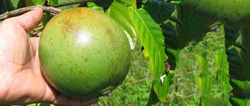 寶樂果粉取自寶樂果,也叫博羅霍,西班牙語為Borojo。它是一種生長在南美洲厄瓜多爾和哥倫比亞熱帶雨林地區(qū)的水果??礃幼用?,其貌不揚,和番石榴差不多模樣,不過個頭稍大。直徑達(dá)7-12cm,還沒有成熟時呈綠色,成熟時轉(zhuǎn)為茶褐色,重量有五六個蘋果那么重,果肉柔軟多籽。味道酸澀粘稠。