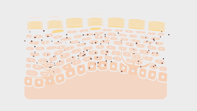 下面是一張人體的皮膚結(jié)構(gòu)圖。在正常情況下,皮膚底部的基底層會不斷生成角蛋白細(xì)胞,然后不斷移動最終脫落。與此同時,同樣位于基底層的黑色素細(xì)胞會通過絡(luò)氨酸酶不斷制造黑色素,轉(zhuǎn)移進(jìn)角蛋白細(xì)胞,搭起了“便車”。